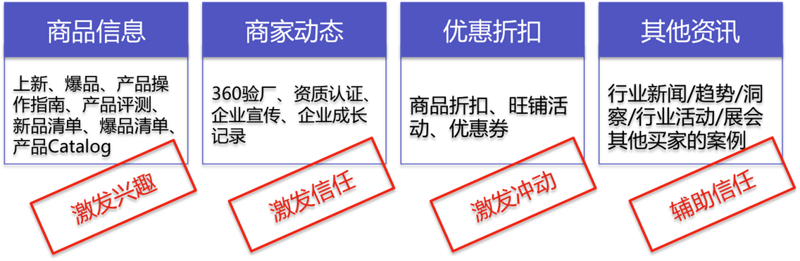 建议分享行业趋势、行业见解,参加的行业活动/线下展会也别忘了随手分享;其他买家的评论、感言、案例,也是极好的